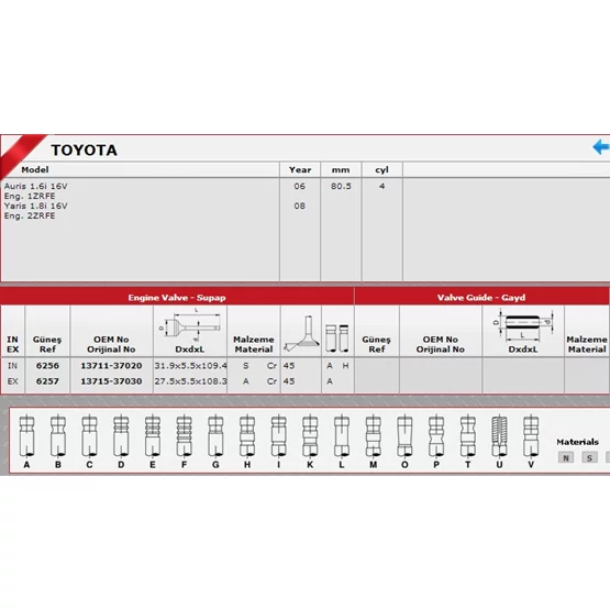 1371137020-1371537030 Toyota Auris Sibop Takımı : Sibop Takımı 6256-6257 In-8-Ex-8 Auris 1.6İ-16V Eng.1Zrfe-Yaris 1.8-16V Eng.2Zrf, 1371137020-1371537030 GÜNEŞ