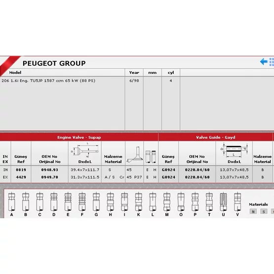 0948.93 0949.70 Citroen Saxo Sibop Takımı : Sibop Takımı 0819 4429 In 4 Ex 4 P206 1.6İ 8V Motor Tu5jp, 0948.93 0949.70 GÜNEŞ