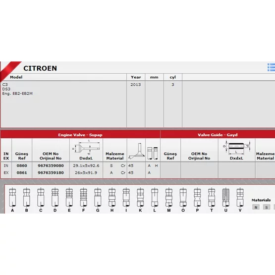 9676359080-9676359180 Citroen Celyse Sibop Takımı : Sibop Takımı 0860-0861 In-6 Ex-6 C-Elysee P301 12V, 9676359080-9676359180 GÜNEŞ
