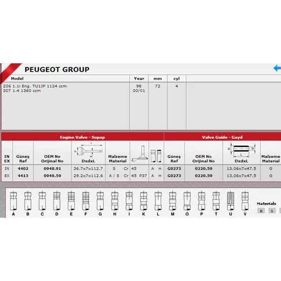 0948.91 0949.59 Citroen Berlingo Sibop Takımı : Sibop Takımı 4402 4413 In 4 Ex P106 P206 P306 1.4 8V (Tu3jp), 0948.91 0949.59 GÜNEŞ