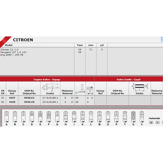 0948.E2 0949.C8 Citroen C1 Sibop Takımı : Sibop Takımı 4437-4438 Citroen C1 P107 1.0İ 12V In Eng.1Kr-Fe In, 0948.E2 0949.C8 GÜNEŞ