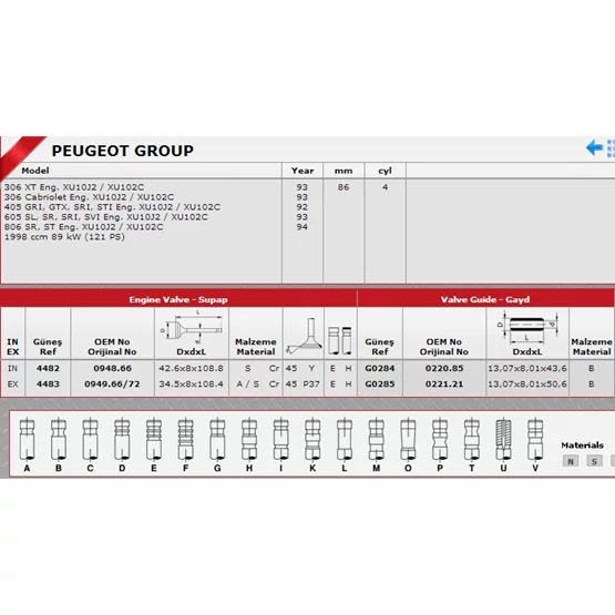 0948.66 0949.66 094972 Citroen Evasion Sibop Takımı : Sibop Takımı 4482 4483 In 4 Ex 4 P306 Xt Cabriolet P406 Gri Gtx Srı P605 Sl Sr, 0948.66 0949.66 094972 GÜNEŞ