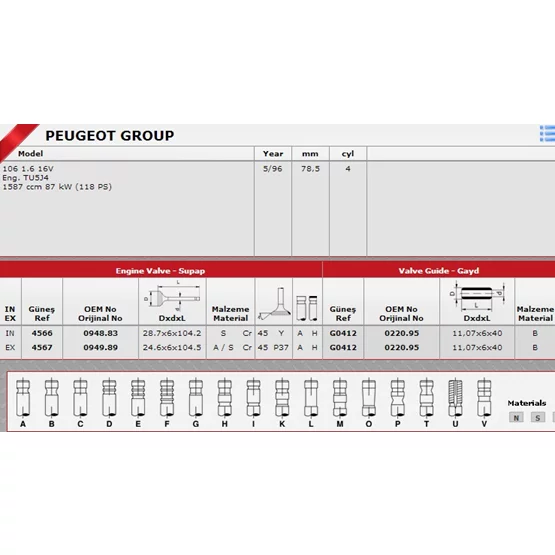 0948.83 0949.89 Citroen Saxo Sibop Takımı : Sibop Takımı 4566 4567 In 8 Ex 8 P106 Gtı-16V (Tu54), 0948.83 0949.89 GÜNEŞ