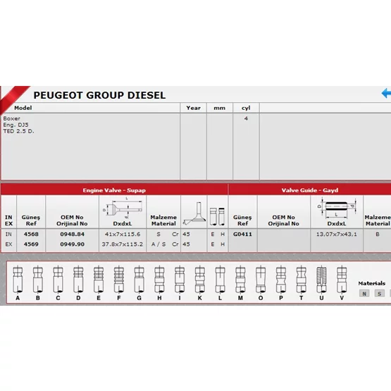 0948.84 0949.90 Citroen Jumper Sibop Takımı : Sibop Takımı 4568 4569 In 4 Ex 4 Dj5ted Dizel 2.5Td 8V Ducato Boxer Jumper 94-01, 0948.84 0949.90 GÜNEŞ