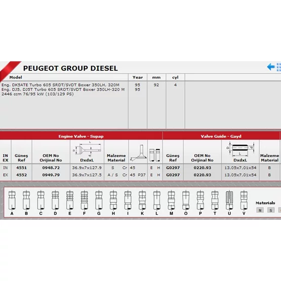 0220.93 Citroen Jumper Sibop Gaydı : Sibop Gaydı G0297 In 8 Ex 4 Boxer 350 Lh 320M 2.5 Dizel Bronz 12 Volt, 0220.93 GÜNEŞ
