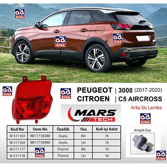 9811718480 Citroen C5 Sis Lambası : M511178 Arka Sis Farı Sol P3008 (17-20) C5 Aircross (Duysuz), 9811718480 MARS