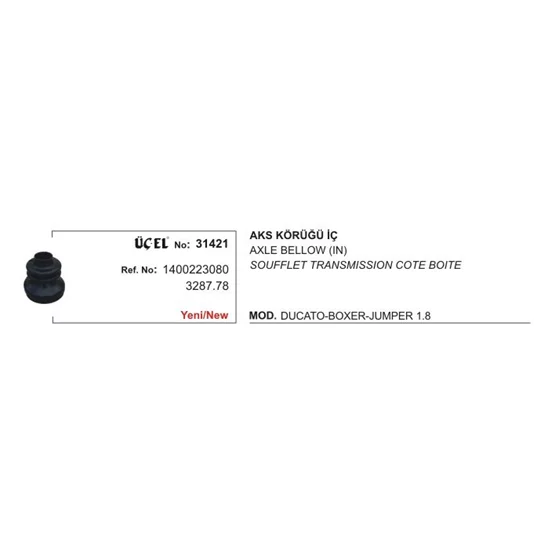 1400223080 Citroen Jumper Aks Körüğü : (Tek) Aks Körüğü İç 31421-T 1.8 Ducato Boxer Jumper 1.8Q 1400223080, 1400223080 ÜÇEL